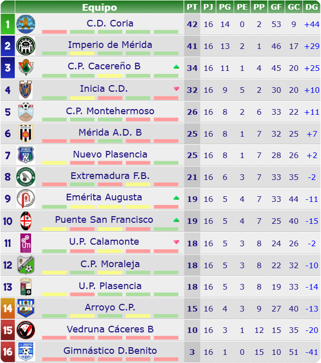 El Arroyo C.P. (14º con 15 puntos) recibe a la U.P. Calamonte (11º con 18 puntos). Es un partido de «seis puntos»: si el Arroyo gana, empataría a puntos con los de Calamonte, arrastrándolos hacia la pelea del descenso.